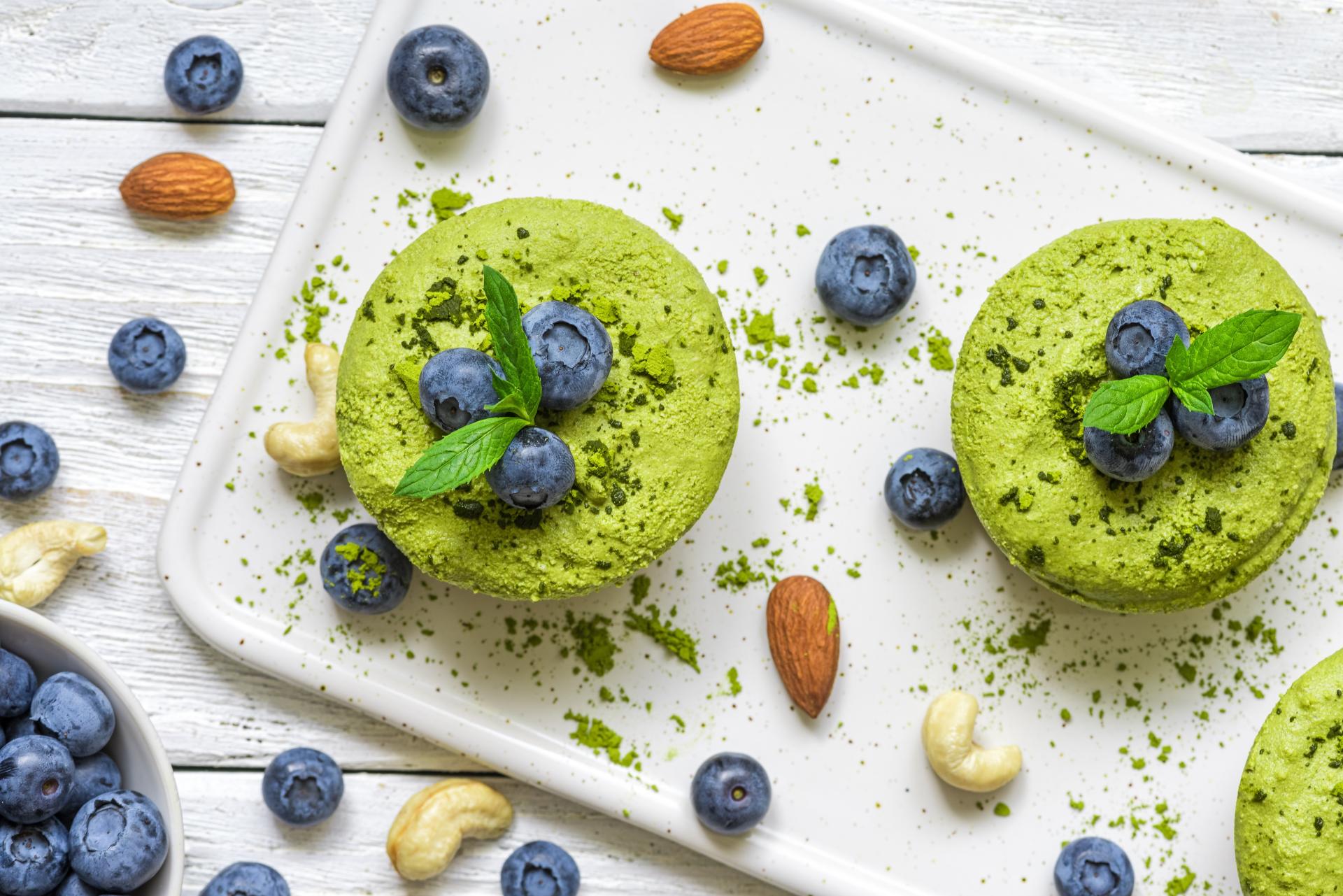 Alege aromele tale preferate, dar poți și experimenta cu culori intense și combinații interesante de gusturi. De exemplu mergi pe verde cu albastru, cu pudră de Matcha și afine: