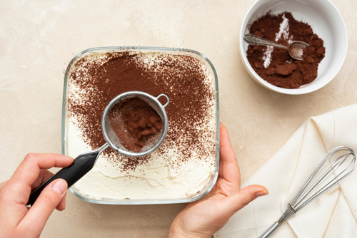 Cu câteva momente înainte de a-l servi se pudrează cu cacao.